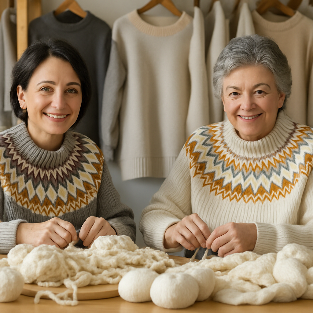 Styling women’s handcrafted sweaters is both fun and versatile. Pair a vintage floral knit for cosy everyday comfort with slim jeans and boots for a relaxed weekend look, or wear a Nordic-inspired sweater with a midi skirt to add a fashionable twist. Floral patterns bring colour and personality to autumn and winter outfits, while yoke sweaters add a nostalgic feel that never goes out of style. With oversized fits or fitted knits, retro sweaters adapt easily to both casual and semi-formal occasions.